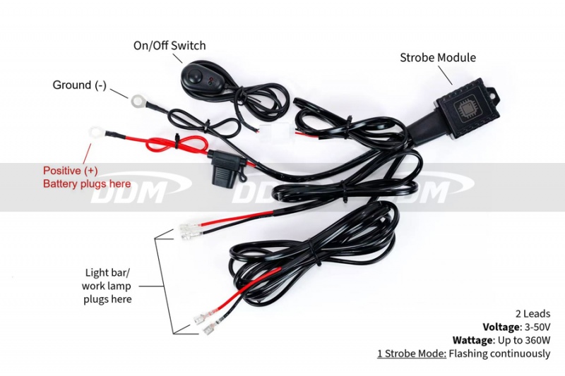LED Auxiliary Harness, On-off Switch, 2 Leads, Up to 360W, 3-50V, 1 Mode Strobe