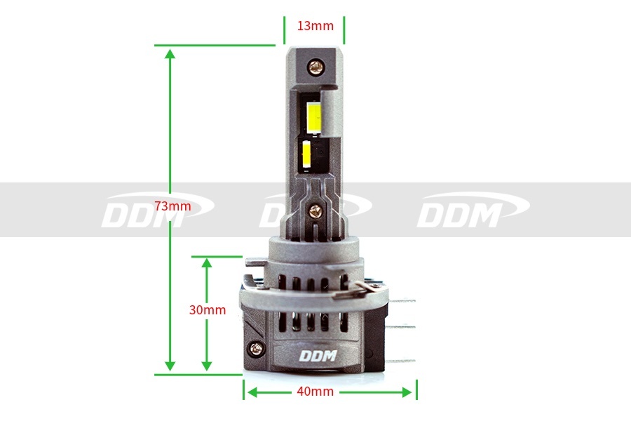 DDM Tunings SaberLED OE Fit 50W V2 H15 is a true direct plug-and-play LED replacement, matching the exact size and shape of an H15 halogen bulb. Producing 11,000 lumens per pair, it delivers powerful brightness and long-lasting performance thanks to premium-grade components. Advanced built-in Canbus compatibility ensures error-free illumination. Its the perfect fusion of OEM fitment with advanced LED performance.